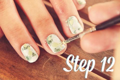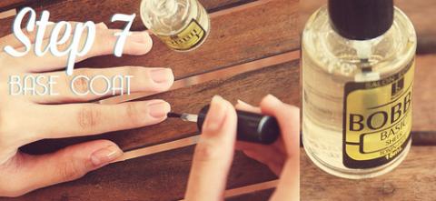 Bước 5, 6 và 7: Rửa sạch tay để hết mùi dấm. Chờ 2 phút cho móng tay khô hẳn. Tiếp đến, phủ một lớp sơn dưỡng bảo vệ móng.