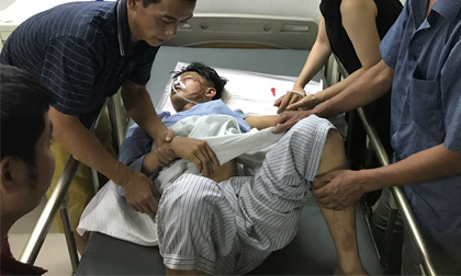 Còn Nguyễn Tiến Đ. (cùng 17 tuổi) bị chấn thương nặng hơn vẫn đang hôn mê. Nhiều lúc lên cơn mê sảng Đ. liên tục vung tay chân nên người thân phải thay nhau giữ.