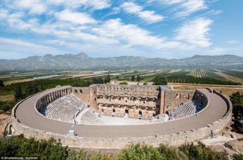 khu di tích Aspendos gần thành phố Antalya, Thổ Nhĩ Kỳ.