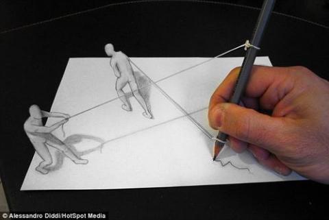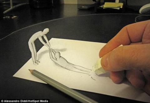 Bằng những nét bút đơn giản, họa sĩ Alessandro Diddi đã tạo ra những tác phẩm 3D đầy sống động.