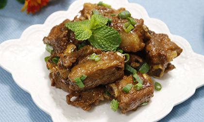 Miếng sườn kho nước cốt dừa béo ngậy, thơm lừng, đậm đà mà rất trôi cơm. Đảm bảo cả nhà sẽ đánh bay nồi cơm lúc nào không hay.