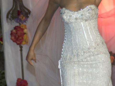 Đối với những cô dâu chịu chi, mức giá đắt hơn 10 lần so với thông thường hẳn không phải là điều gì đó quá khó chấp nhận. Đặc biệt là khi nó được tạo ra bởi nhà thiết kế người Ý Mauro Adami. Đây là sản phẩm trong bộ sưu tập của ông năm 2008 với 40m vải màu bạch kim với các đường khâu thực sự tỉ mỉ. Bên cạnh đó, việc để lộ bờ vai sẽ khiến các cô dâu quyến rũ hơn rất nhiều trong lễ cưới.