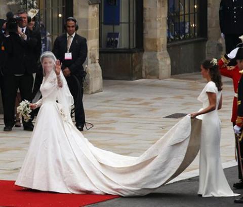 Nhà thiết kế Sarah Burton đã biến Kate Middleton thành nàng công chúa thực sự với chiếc váy cưới trị giá 400.000 USD này. Theo đó, váy sử dụng các loại vải cao cấp nhất từ Anh và Pháp và được thực hiện trong nhiều tháng trời với hầu hết công việc được làm thủ công.