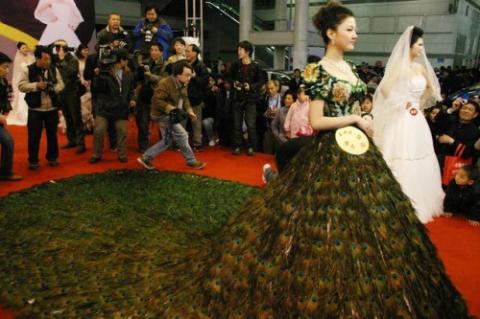 Vera Wang luôn biết cách tạo sức hút trong giới thời trang và váy cưới cùng là một trong những sở trường của cô. Theo đó, bỏ qua màu trắng quen thuộc, Wang đã sử dụng những chiếc lông công sặc sỡ để tạo nên bộ váy ra mắt năm 2009 này. Tuy đây có thể là chiếc váy đắt nhất mà Wang thực hiện, song vẫn có nhiều ý kiến khác nhau về tính thẩm mĩ của bộ váy.