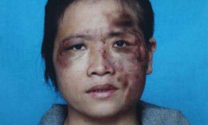 Chị Hồng với vết thương khắp mặt do bị chồng bạo hành