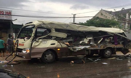 | Chiếc xe khách bị tông biến dạng khiến ít nhất 3 hành khách tử vong. |