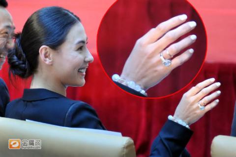 Chiếc nhẫn khả nghi mà nữ diễn viên nổi tiếng Hongkong này đeo trong cuộc họp báo phim mới tại Bắc Kinh đã trở thành tâm điểm chú ý của báo giới.