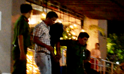 Công an áp giải nghi can Bình về trụ sở