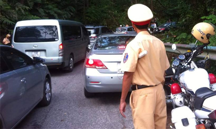 Lực lượng CSGT tổ chức phân luồng điều tiết giao thông.
