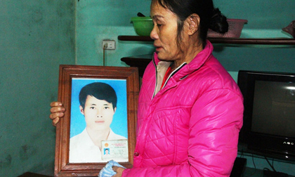 Người mẹ nạn nhân quặn thắt bên di ảnh của con trai. Ảnh: Hùng Tiến.