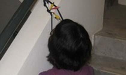 Người thân phát hiện bé Hạnh tử vong trong tư thế treo cổ bằng chiếc khăn vải nối với ô thông gió cửa sổ.