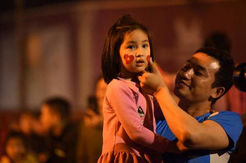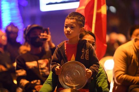 Các em nhỏ được bố mẹ đưa đi ăn mừng Việt Nam góp mặt vào vòng