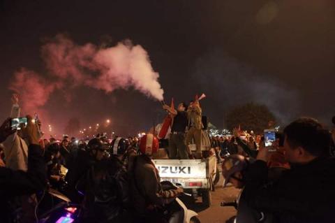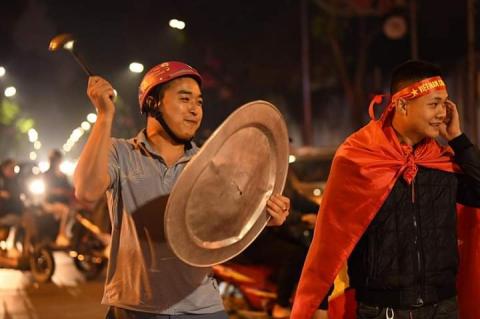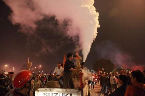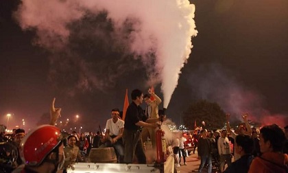 Tối 26/3, ngay sau khi trọng tài nổi hồi còi kết thúc trận đấu giữa U23 Việt Nam và U23 Thái Lan tại vòng loại bảng K giải Vô địch U23 Châu Á, hàng nghìn cổ động viên đã tràn ra đường ăn mừng chiến thắng.