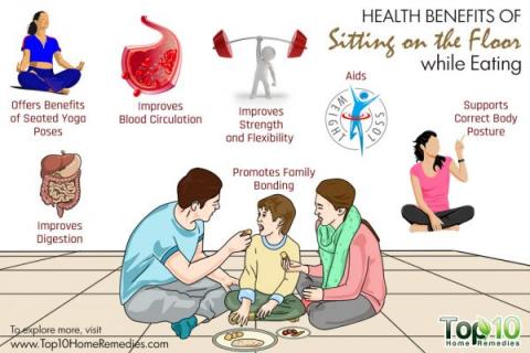 Ngồi bệt ăn theo tư thế bắt chéo chân rất tốt cho hệ tiêu hóa. Thực hiện liên tục động tác cúi người ra phía trước để gắp thức ăn sau đó trở lại tư thế thẳng sẽ giúp các cơ ở bụng tiết ra dịch tiêu hóa, thúc đẩy sự phân giải thức ăn nhanh chóng.