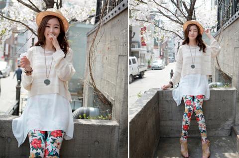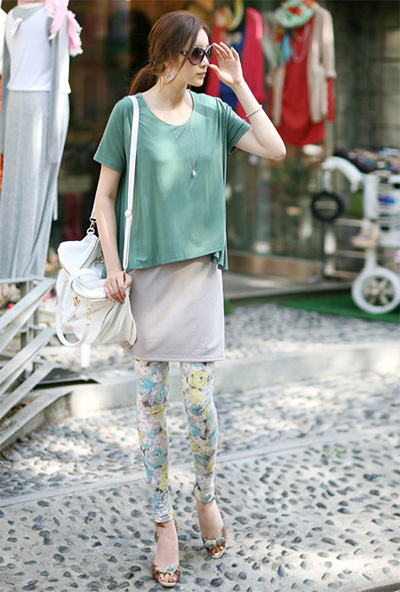 Các bạn gái dịu dàng, yêu thích phong cách thời trang nữ tính và có thân hình nhỏ nhắn nên chọn quần leggings màu sáng, họa tiết không quá cầu kỳ và mix với áo màu sáng. Trang phục này sẽ mang lại cảm giác mát mẻ trong ngày oi bức, lại rất duyên dáng.