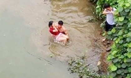 Thấy nữ sinh gieo mình xuống dòng sông, anh Trung vội lao theo vật lộn với dòng nước cuộn xiết “cướp” nữ sinh khỏi miệng hà bá.