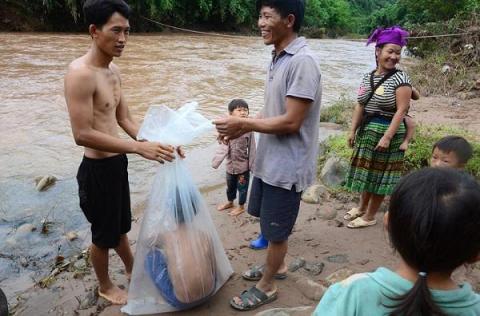 Mọi người dân ở bản Huổi Hạ đã quá quen với cảnh đưa con qua sông đi học.