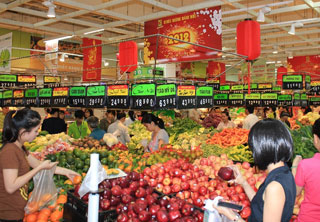 Các siêu thị Co.opFood, Vissan, Co.opMart, Vinatexmart, Big C,… vẫn cung cấp phong phú các mặt hàng thực phẩm tươi sống như thịt heo, thịt gà được giữ giá ổn định nhờ chương trình Bình ổn giá. Chẳng hạn, Tổng công ty Nông nghiệp Sài Gòn, Vissan, Saigon Co.op và Vinatexmart liên kết giảm giá 10.000 đồng/kg trên tất cả loại thịt gia súc, đến hết mùng 5 tết; Công ty Phạm Tôn giảm giá 2.000 đồng/kg thịt gia cầm đến mùng 9 tết. Big C áp dụng chương trình khuyến mãi cho hơn 200 mặt hàng rau củ quả, thịt, thủy hải sản tươi sống, thực phẩm chế biến với mức giảm từ 5 - 20%. Các mặt hàng này được khuyến mãi trong tuần lễ từ 26.1 đến 1.2.2012. Ngoài ra còn nhiều mặt hàng thực phẩm khác tại Big C giảm giá từ nay đến 12.2. Nếu chịu khó bỏ thời gian đi săn hàng thực phẩm tươi sống giá mềm ở các siêu thị, các bà nội trợ sẽ tiết kiệm được một khoản chi phí đáng kể so với mua sắm ở các chợ cóc.