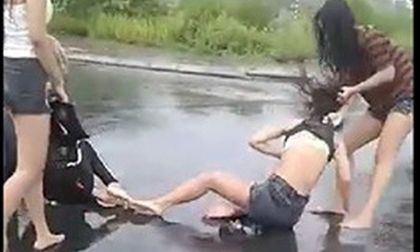 Bất chấp trời mưa to gió lớn, một nhóm thiếu nữ vẫn tổ chức đánh 1 nữ sinh ngay giữa đường, lột áo quay clip rồi tung lên mạng xã hội.