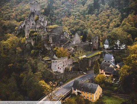 Tòa lâu đài cổ trông rất ấn tượng, nổi bật giữa khu rừng và những vách núi đá.