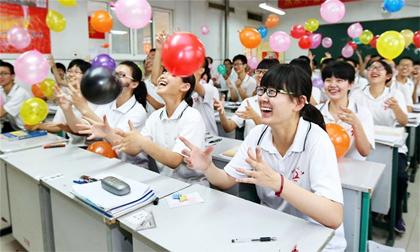 Học sinh lớp 12 trường Trung học số 2 ở thành phố Hành Thủy, tỉnh Hà Bắc, Trung Quốc, chơi bóng bay để giảm căng thẳng trong những ngày chuẩn bị cho kỳ thi đại học (Gaokao). Ảnh: Xinhua.