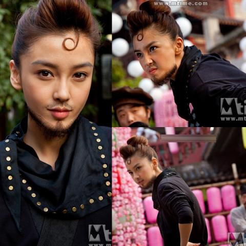 Angelababy (Dương Dĩnh) trong Hoa Điền hỷ sự đóng vai công chúa Di Chu của nước Hoa Điền, không may gặp phải hải tặc mà mất đi trí nhớ lưu lạc dân gian, rồi nhầm lẫn thế nào lại cải nam trang tham dự kén phò mã. Angelababy tuy đeo râu giả và để kiểu tóc trông khá "dị hợm" nhưng trông chị vẫn rất đáng yêu.
