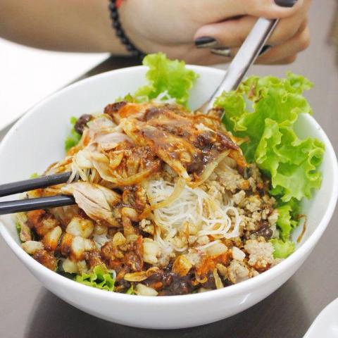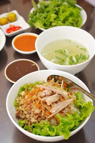 Khi ăn, cho tóp mỡ, rau giá, xà lách… lên trên rồi cho tương vào, trộn đều các thành phần lên rồi từ từ thưởng thức. Sợi phở khô khá đặc biệt, dù được làm từ bột gạo nhưng không mềm và dẹp như bánh phở thông thường mà có dáng tròn, mảnh và hơi dai. Nhờ vậy mà khi trộn đều lên, sợi phở rất dễ thấm gia vị nhưng không bị nát.