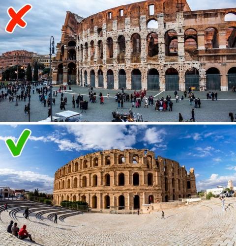 Ngay cả khi đã đến Rome, bạn cũng sẽ choáng với dòng người đang chờ để được vào viếng thăm Colosseum. Thay vì mất thời gian chờ đợi, bạn hãy cân nhắc đến Tunisia với nhà hát ngoài trời cũng cổ kính không khác Colosseum là bao, mà phí vào cửa lại cực rẻ.