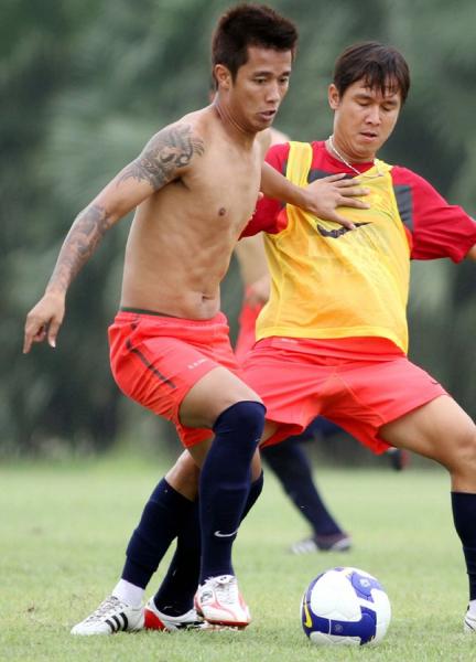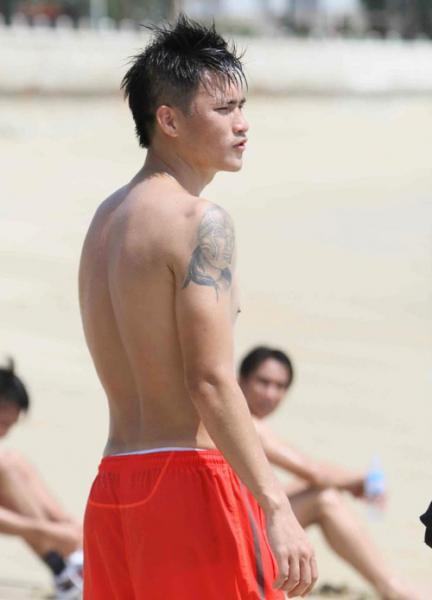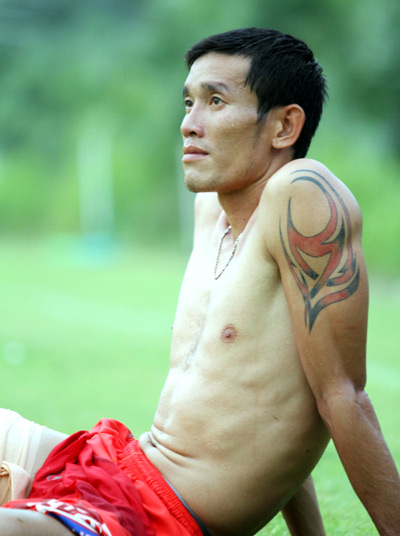 Cựu cầu thủ Hà Nội T&T, Đại Đồng bắt chước thần tượng Beckham khi phủ kín hai cánh tay bằng những hình xăm ấn tượng.