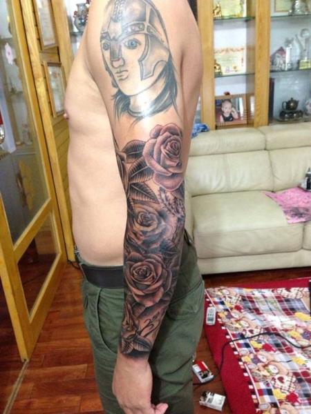 Đồng hương của Công Vinh, cựu đồng đội tại CLB Hà Nội T&T, thủ thành Dương Hồng Sơn với cánh tay trái kín hình xăm. Thủ thành xứ Nghệ cũng xăm hình chiến binh La Mã trên bắp tay và cánh tay phủ kín hoa hồng.