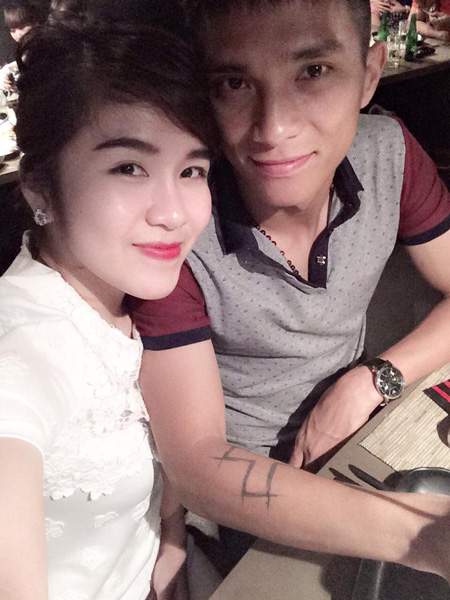 Không xăm chiến binh hầm hố, tiền vệ Ngọc Duy của Hà Nội T&T sở hữu hình xăm khá "xì tin" trên bắp tay trái.