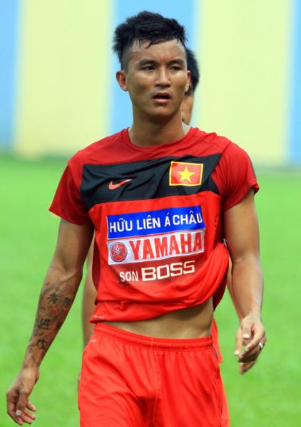 Giống như các đàn anh, tiền vệ Lê Hữu Phát (Đồng Nai) xăm khắp cả hai tay.