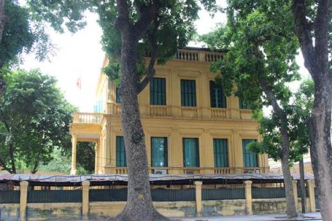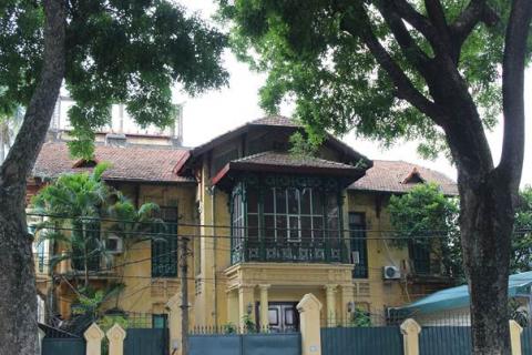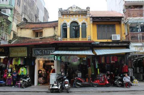 Tường quét vôi màu vàng và cửa sổ màu xanh lá là đặc trưng của kiến trúc Pháp ở phố cổ Hà Nội.