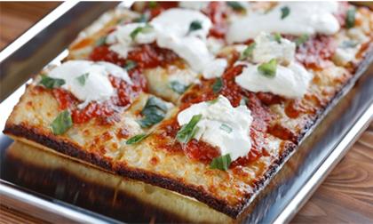 Người dân New York (Mỹ) đang phát sốt vì món pizza kiểu Detroit, với đế vuông, nhiều phô mai ngon tuyệt. Bạn có thể thử món này ở hàng Emmy Squared tại Brooklyn. Ảnh:Grubstreet.