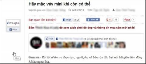 Một ví dụ cho thấy các nút like ẩn được chèn khéo léo ra sao trên giao diện một website.