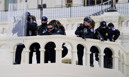 Các thành viên Lực lượng cảnh sát Điện Capitol trong lúc thi hành nhiệm vụ hôm 6-1. Ảnh: AP