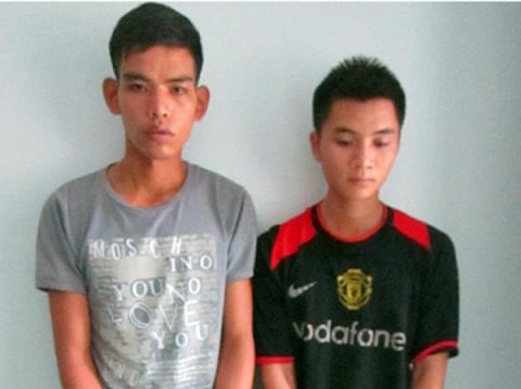 Hai đối tượng Nguyễn Doãn Tấn và Nguyễn Tiến Thuận tại cơ quan công an.