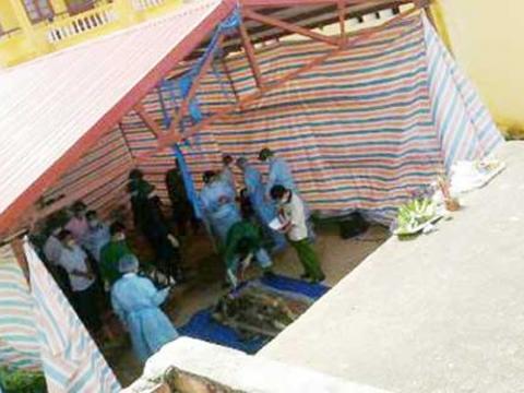 Cơ quan điều tra đã phải căng lều, bạt để tìm nguyên nhân cái chết của nạn nhân