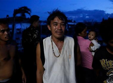 Người dân ở Tacloban chờ nhận đồ tiếp tế tại sân bay thành phố tối ngày 9/11