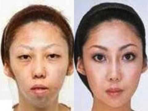 Vợ của Jian Feng trước (trái) và sau khi phẫu thuật thẩm mỹ