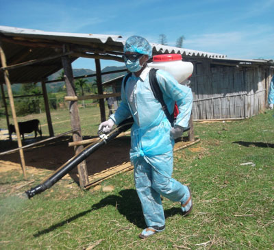 Ngành y tế Quảng Ngãi tổ chức phun hóa chất xử lý môi trường tại xã Sơn Ba, địa phương có 2 bệnh nhân vừa bị bệnh lạ