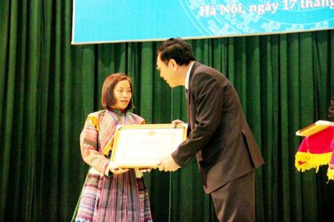 Cô giáo Vàng Thị Ghếnh trong lễ vinh danh nhà giáo tiêu biểu giai đoạn 2008-2013.