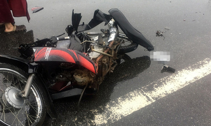 Chiếc xe máy bị biến dạng hoàn toàn sau vụ tai nạn kinh hoànòa