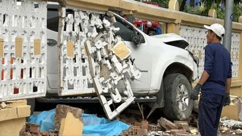 Chiếc "xe điên" tông sập bờ tường của tòa thánh