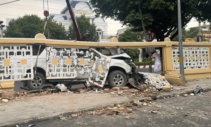 "Xe điên" tông sập bờ tường xi măng của tòa thánh