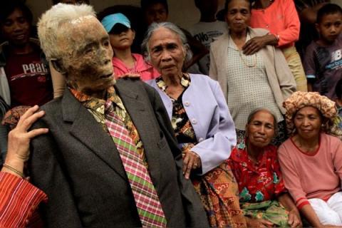Những người thân đã khuất sẽ mãi là một phần của gia đình cho đến khi có đủ tiền để thực hiện cả một đám tang đình đám.Ngoài ra, những người dân xứ Tana Toraja còn có hủ tục quật mả, trong đó những phần còn lại của thi thể sẽ được quật lên, lau rửa, cho ăn mặc đàng hoàng, và thậm chí được đi lại xung quanh làng.