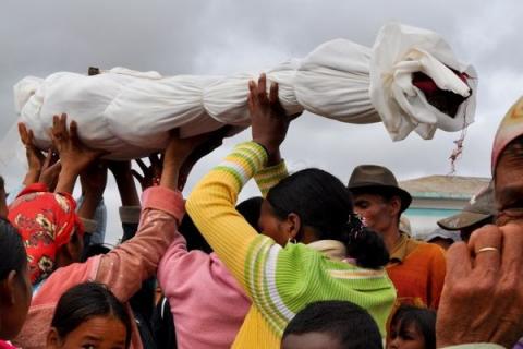Ở Madagascar, không có khái niệm “An nghỉ” với người chết. Người dân ở đây có một nghi thức có tên “famadihana”, nghĩa là “lộn xương”, ở đó họ sẽ lật phần thân xác của người thân đã nằm dưới mồ lên để dạo quanh thành phố.