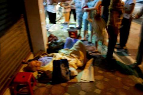 Người dân phố Núi Trúc không khỏi bất bình khi chứng kiến cảnh cụ Nhân phải nằm ở vỉa hè hơn nửa ngày - (Ảnh: Phunutoday)