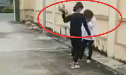 Hai ngày qua, mạng xã hội Facebook lan truyền 2 clip ghi cảnh một nữ sinh mặc áo trắng đồng phục bị bạn dùng mũ bảo hiểm đánh vào đầu.