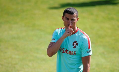 | Ronaldo ra dấu "im lặng" trên sân tập của tuyển Bồ Đào Nha. Ảnh: Getty. |